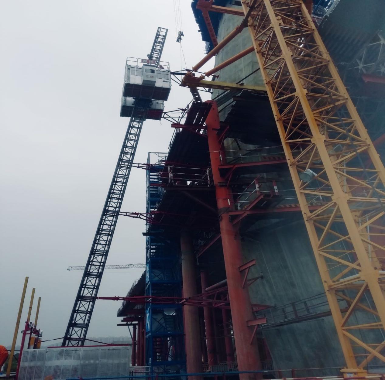 近日,廊坊凱博建設(shè)機(jī)械科技有限公司生產(chǎn)的斜、直線兩用施工升降機(jī)順利投入到廣東佛山“三水三橋”項(xiàng)目。