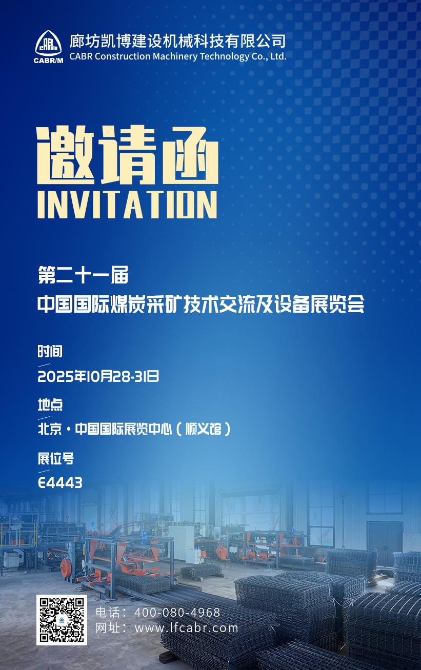 第二十一屆中國國際煤炭采礦技術交流及設備展覽會,將于2025年10月28日-31日在北京中國國際展覽中心(順義館)舉辦!廊坊凱博建設機械科技有限公司(以下簡稱“凱博科技”)邀您相約北京!